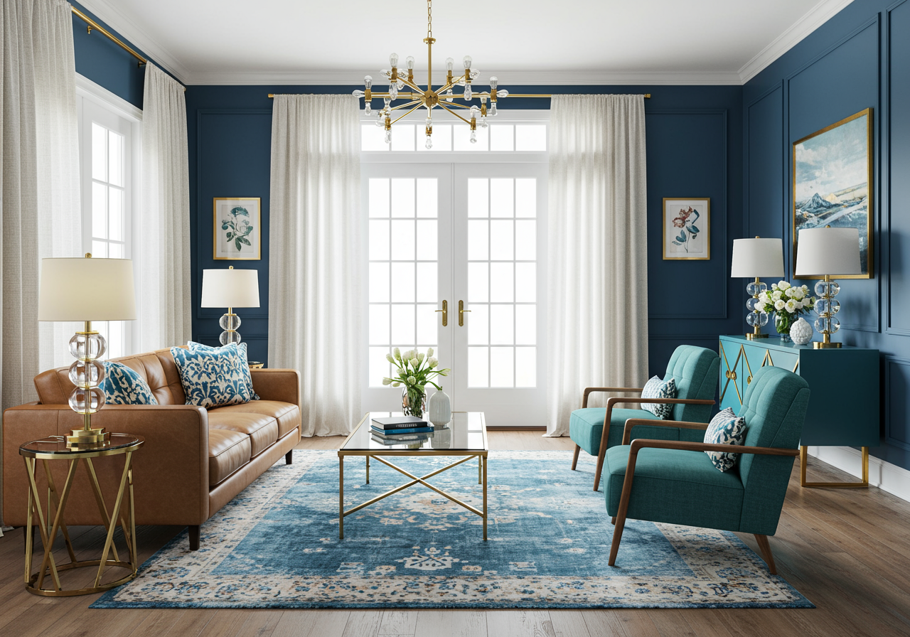 Lending to the overall theme of creating warm, comfortable spaces, another on-trend color palette is earth tones used with pops of color. This can be accomplished using colors found in nature like faded green, deep red, rust, and brown. These warm, rich tones create a cozy atmosphere for home-dwellers and are a terrific complement to bright pops of color like burnt orange and peacock blue. (Photo Credit: The Pinnacle List)