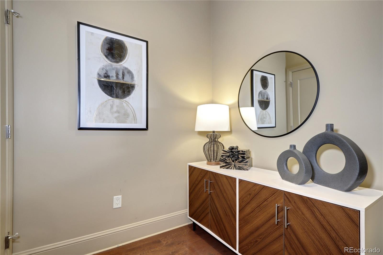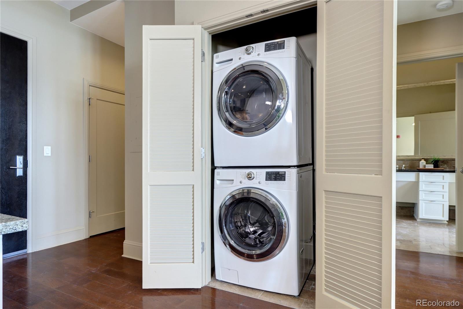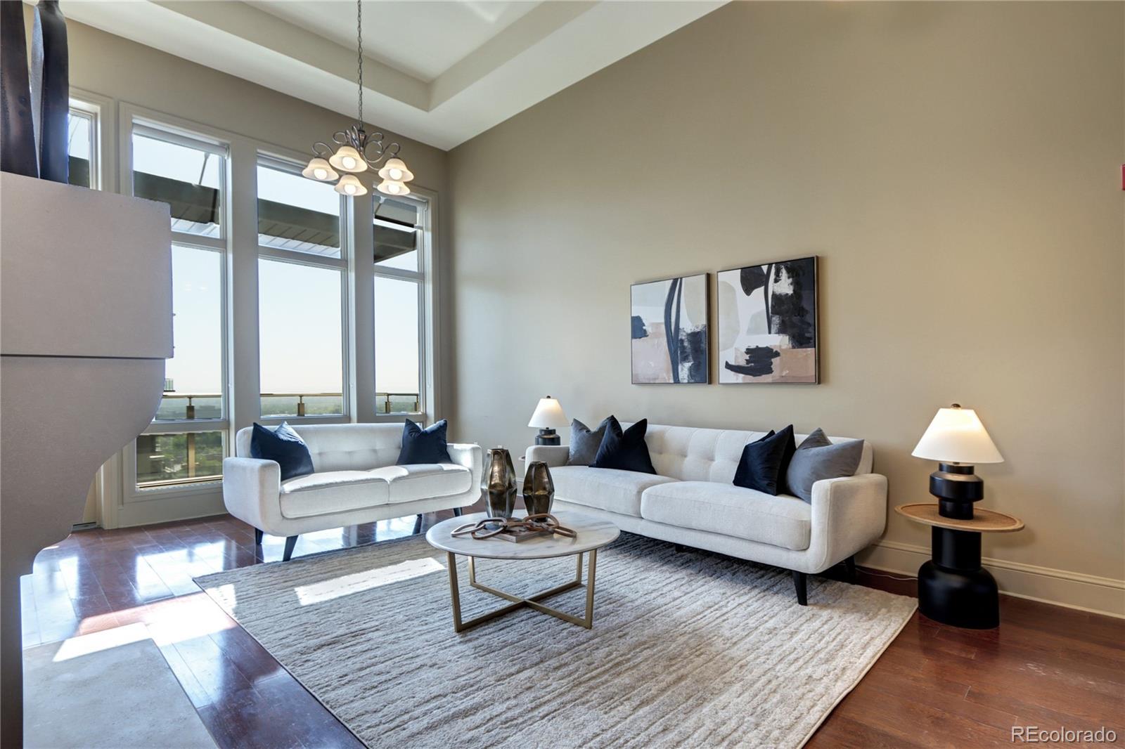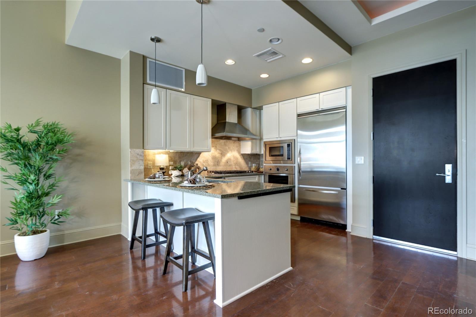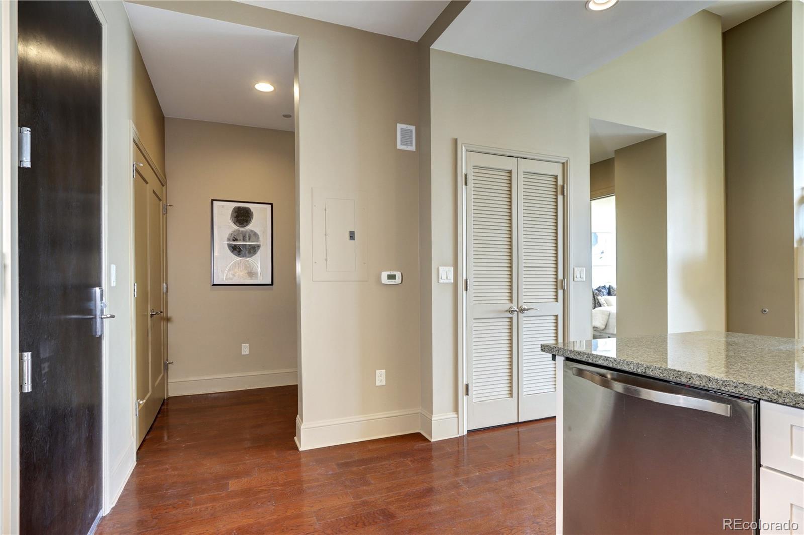 Incredible Penthouse Beautiful 1 bed, 1 bath condo in The Landmark, Greenwood Village's premier luxury community. Enjoy concierge service, top-tier amenities, and a low-maintenance lifestyle in an unbeatable location. The kitchen features Viking stainless appliances--including built-in fridge, oven, microwave, wine cooler, dishwasher, and 6-burner gas cooktop--paired with quartz counters and rich wood cabinetry. The open living area is light-filled with high ceilings, eastern views, and a gas fireplace. Step onto the spacious balcony to soak up the Colorado sunshine. The bedroom suite includes floor-to-ceiling windows, high ceilings, and a spa-like bath with dual sinks, travertine finishes, and a frameless glass shower. A walk-in closet and ample storage throughout offer space to live comfortably. A flexible nook near the entry is perfect for an office or extra storage, and the in-unit washer/dryer adds everyday ease. Enjoy two pools/spas, gym, wine cellar, theatre, library, secure parking, and more. Steps to Landmark Theatre, dining, shops, and minutes to DTC, downtown, and DIA. Luxury living made effortless.